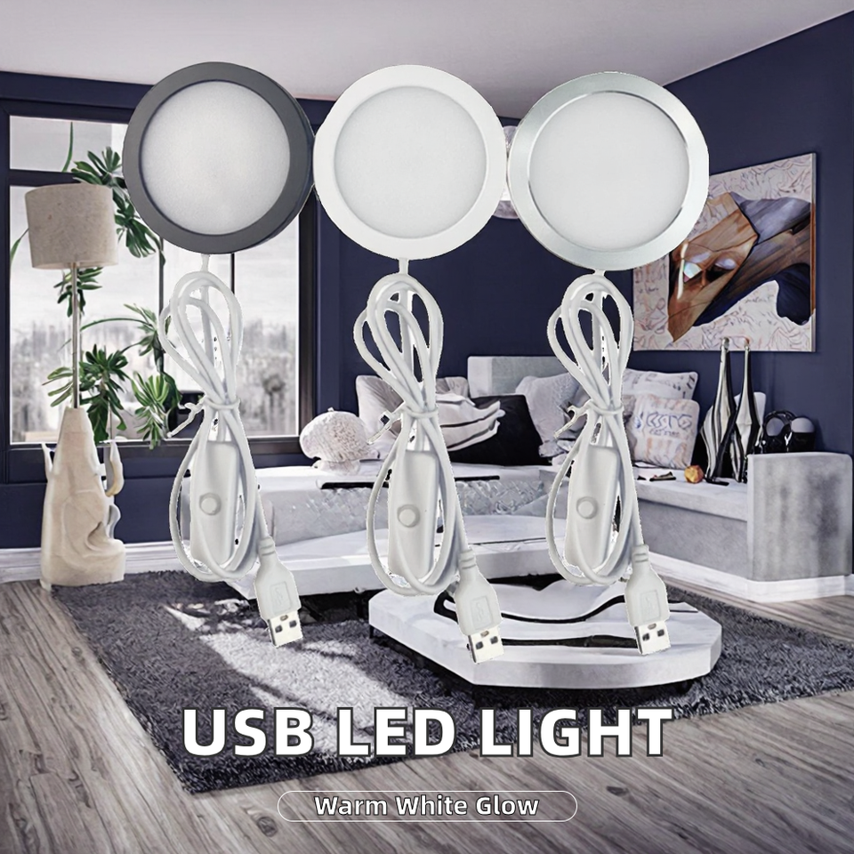 USB 3Watts SMD2835 LED Cabinet Light 3500K Blanc Chaud Plafond Spot Lampe Commutateur 5V Câble Plastique Corps Surface Monté