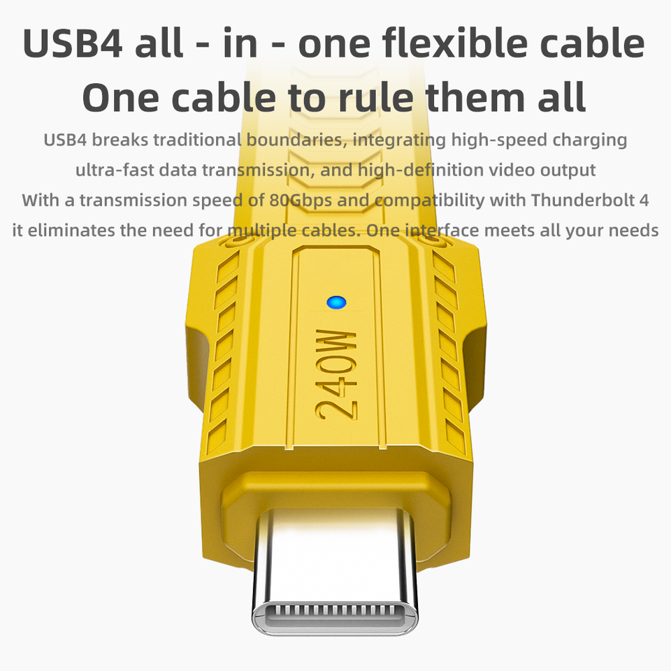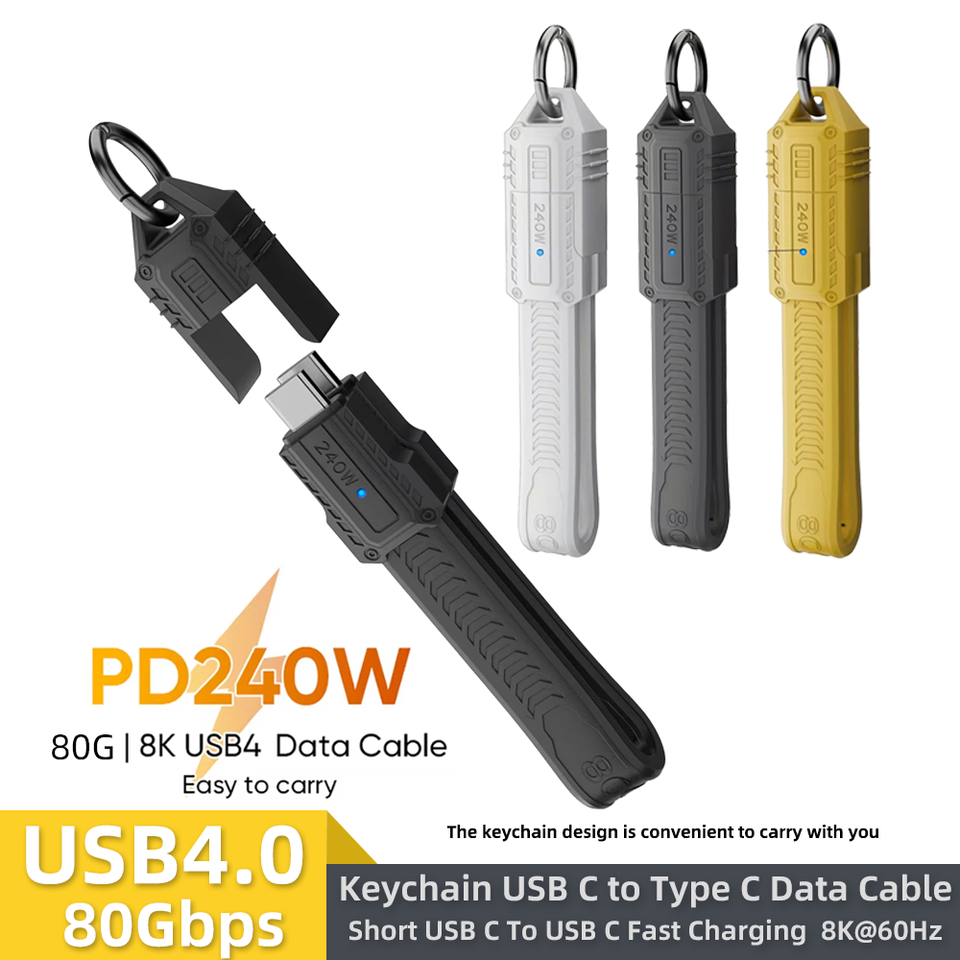Porte-clés portable à 4 câbles, câble USB C de charge 0.4ft 240W, transfert de données 80Gbps, affichage vidéo 8K 60Hz pour iPhone Mac Min iPad