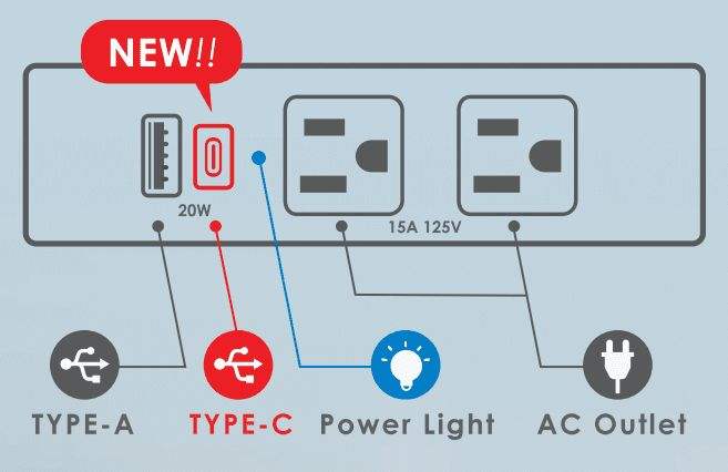 Type femelle d'extrémité:NEMA 5-15R + TYPE-A USB + TYPE-C