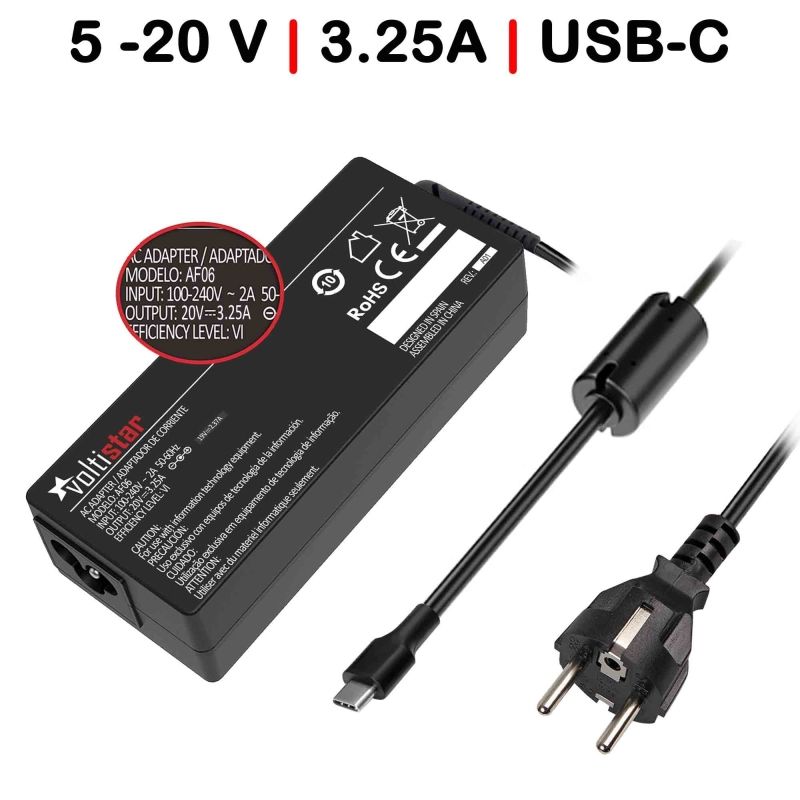 USB-C 65W 5V-20V 3.25A Multivoltage Alimentation pour ordinateur portable Noir pour appareils portables