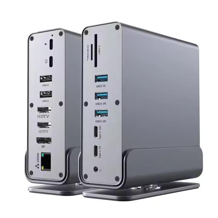 Station d'Accueil USB-C Double Écran HDTV 4K MST, Hub USB 3.0 Interface 16-en-1, Adaptateur Répartiteur Multifonction 3.1 pour MacBook, Ordinateur de Bureau et Audio