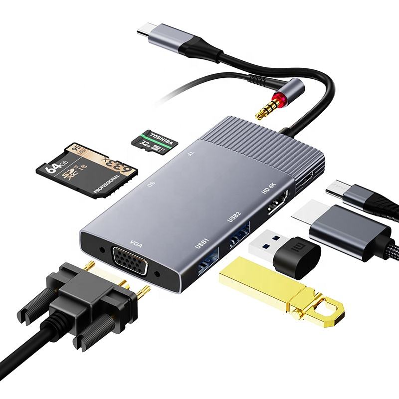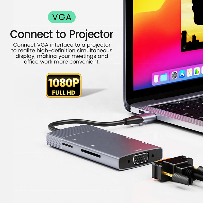 HDIM , VGA , USB-A, PD USB-C, fente d'écart-type TF, audio de 3.5mm