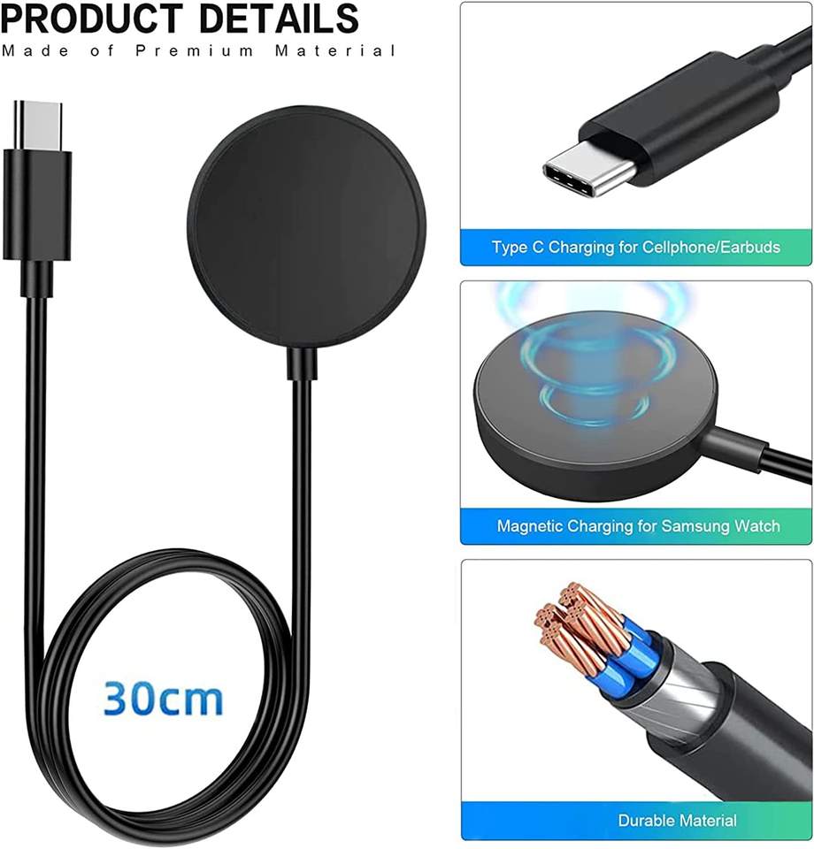 Chargeur de montre USB C compatible avec Samsung Galaxy Watch 6/6 Classic/ 5 Pro/ 5/4/ 4 Classic/ 3/ Active 2/ Active