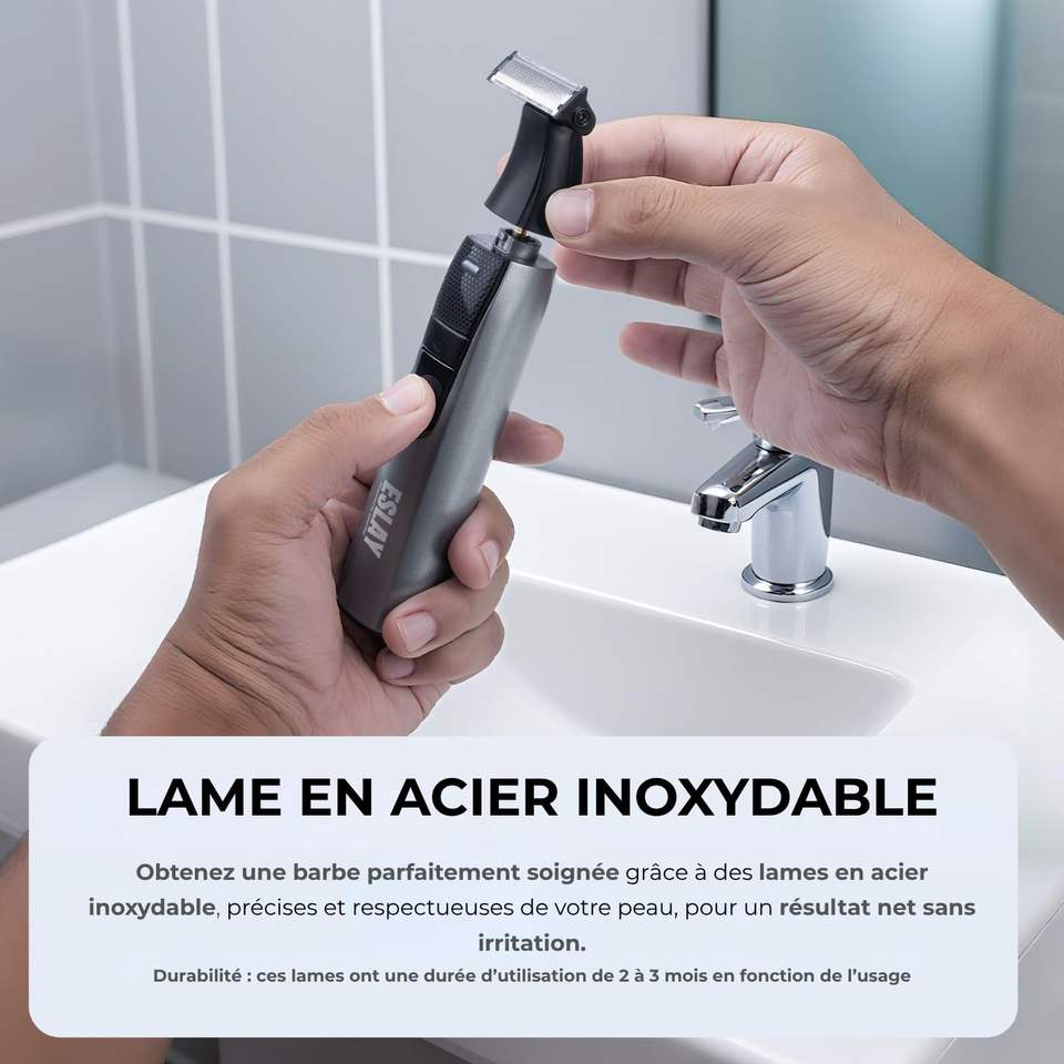 Tondeuse Intime 3-en-1 Rechargeable USB-C pour Hommes, Lames en Acier Inoxydable, Moteur 7200 tr/min, Rasoir Corporel pour Barbe, Cheveux et Zones Sensibles