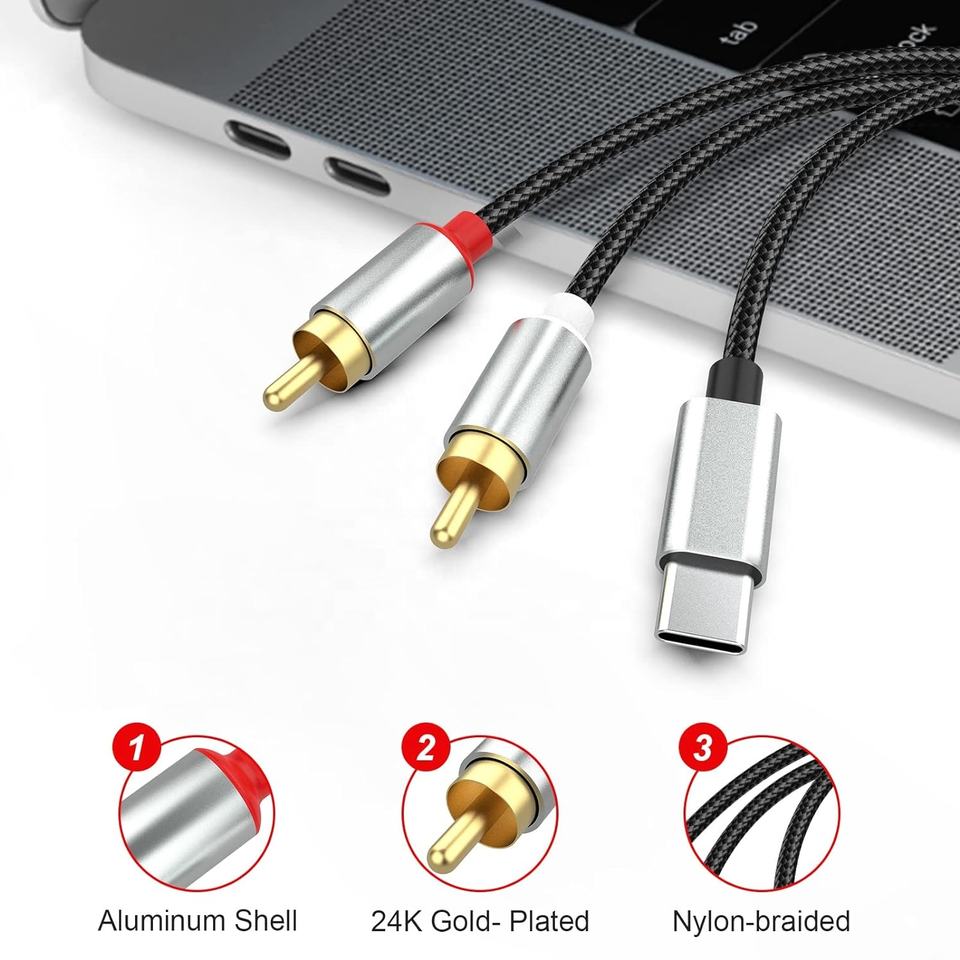 Câble audio USB C vers 2 RCA, cordon séparateur stéréo Y RCA auxiliaire mâle Type-C vers RCA compatible avec le cinéma maison, le haut-parleur, etc.