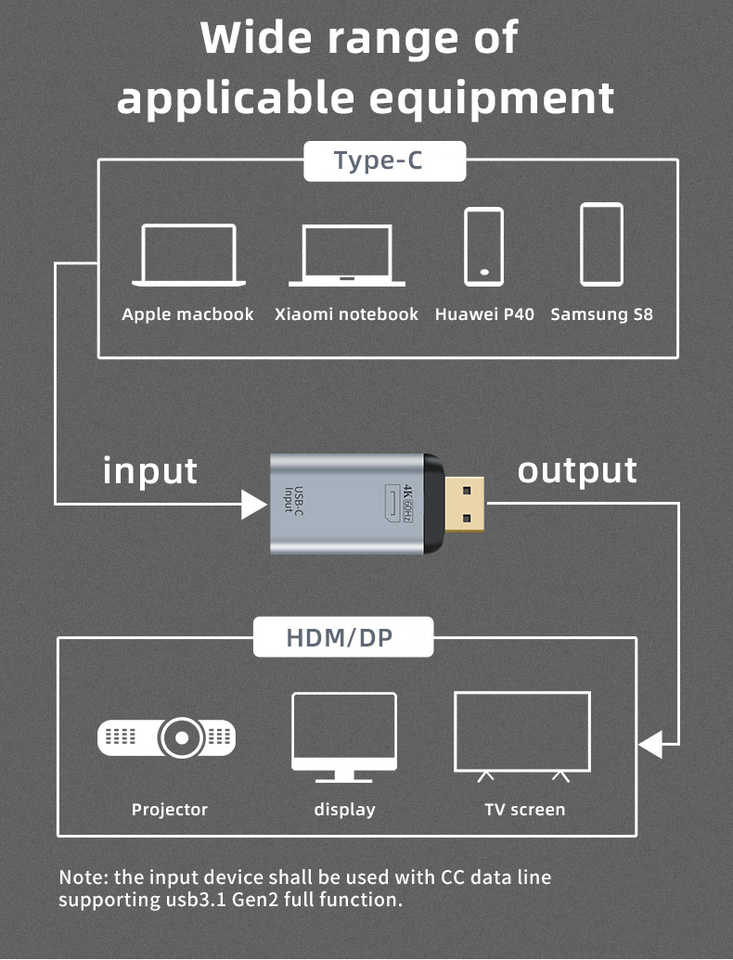 Adaptateur USB-C vers DP HDMIAdapter 4K 60HzType-C vers DisplayPort Dongle avec convertisseur vidéo de charge PD 100W pour téléphone portable pour surveiller la télévision