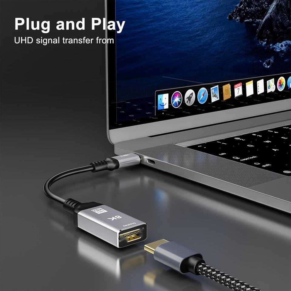 Câble adaptateur USB C vers HD 8K, convertisseur USB-C (Type C) vers HD 2.1 (mâle vers femelle) 8K @ 60Hz 4K @ 120Hz pour Thunderbolt 3/4, MacBook