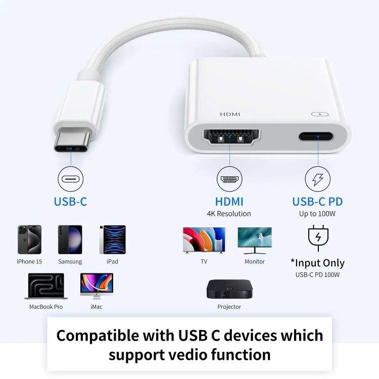 Adaptateur USB C vers HDTV Type C Digital AV 4K Sync Screen Connector Cable Twisted Pair Monitor Application Compatible iPhone 15 TV