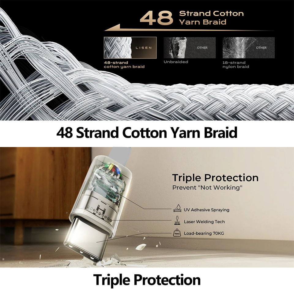 Câble USB Tressé en Nylon pour iPhone, Câble de Chargeur Type C et Micro
