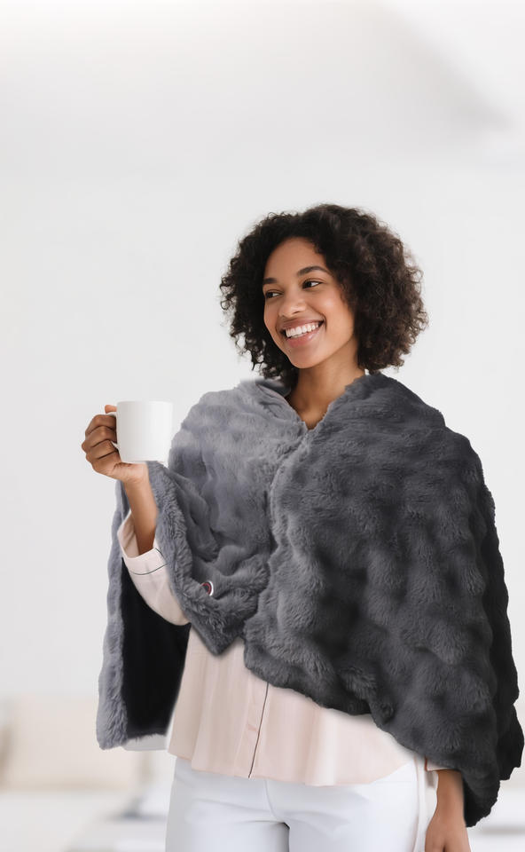 Poncho chauffant électrique USB réglable, couverture chaleureuse et confortable à porter, en peluche lavable, avec contrôle tactile et protection contre la surchauffe