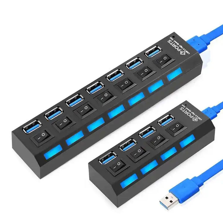 Hub USB 3.0 4 7 ports Multi Splitter Utilisez l'adaptateur secteur Multiple Expander 2.0 USB3 Hub avec interrupteur pour PC