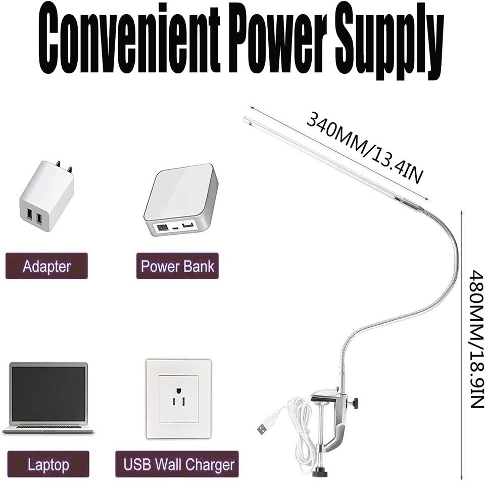 Lampe de bureau à Clip USB LED 8 W pour soins des yeux, col de cygne Flexible, pince pivotante 360 pour la lecture de manucure