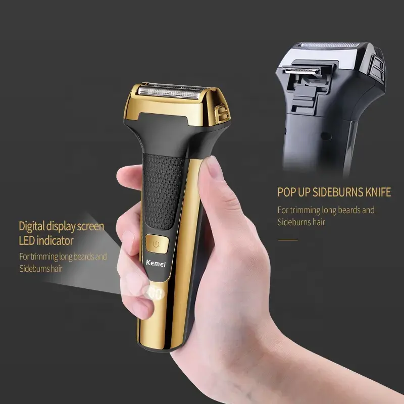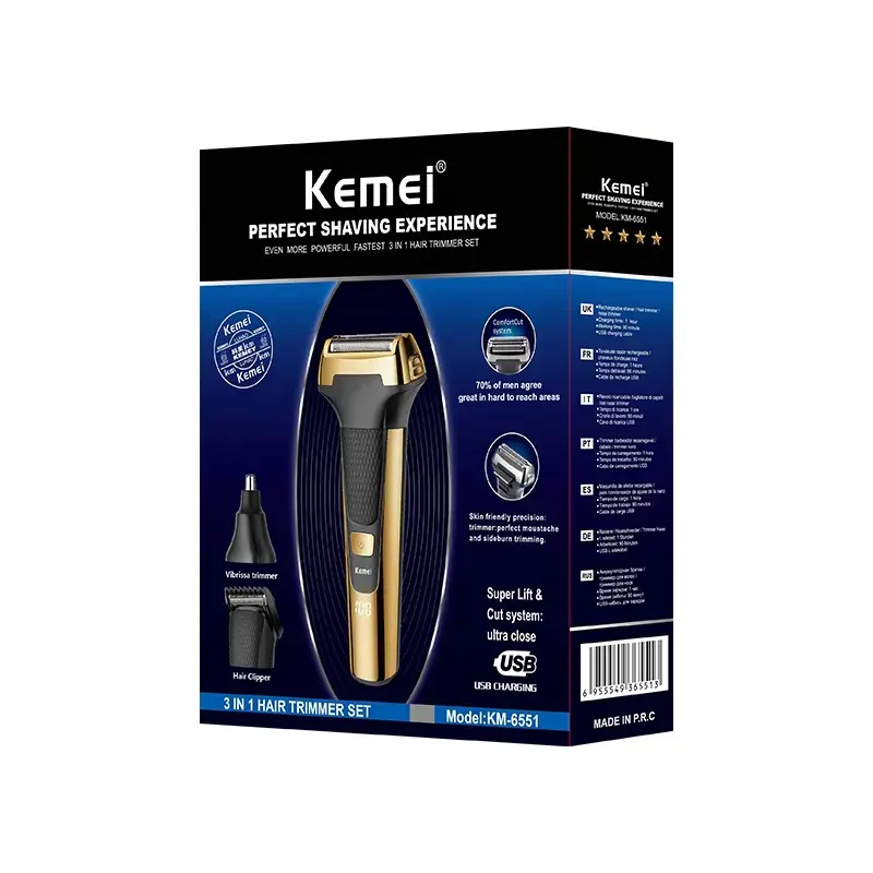 Rasoir électrique LED USB, tondeuse à barbe, machine à raser Kemei Km-6551 3 en 1, tondeuse à cheveux, tondeuse à barbe, soin du corps pour homme