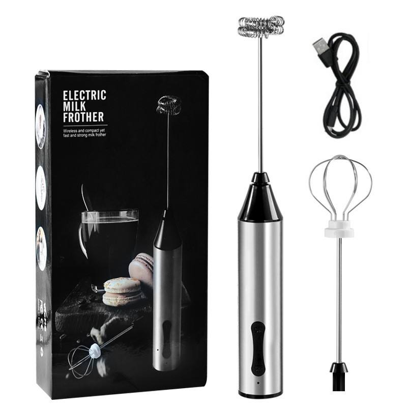 Mousseur de lait USB 2 vitesses rechargeable en acier inoxydable mousseur à café portable
