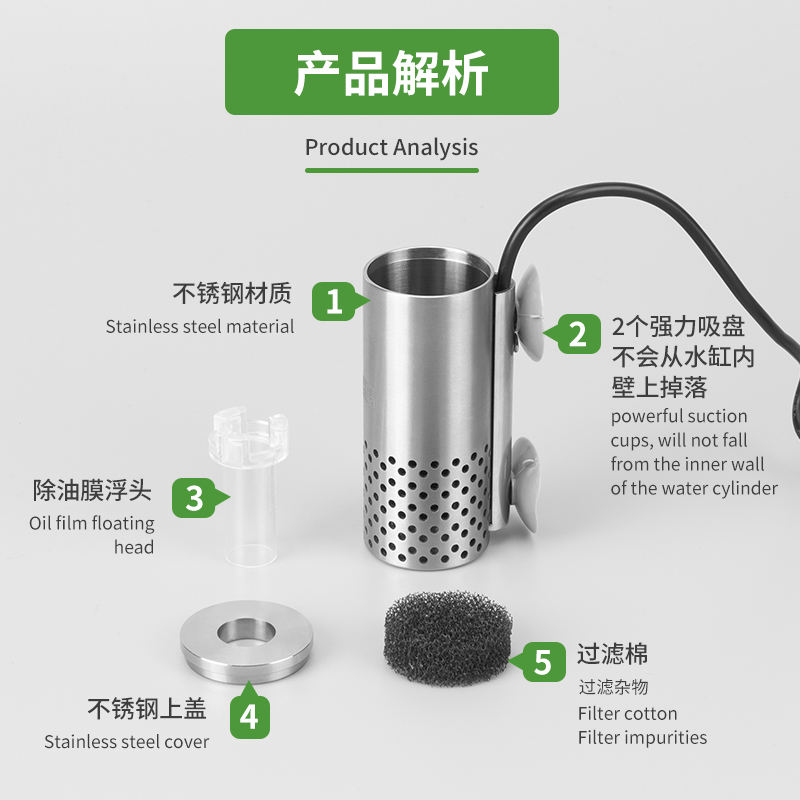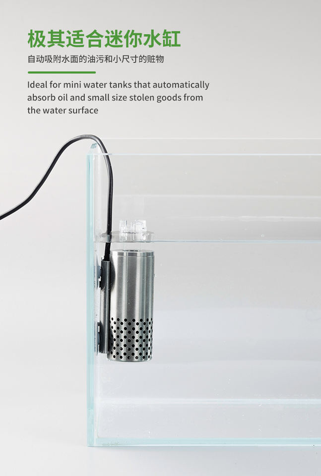 Ecumeur d'huile électrique USB pour petit réservoir d'aquarium Mini cylindre d'eau pour plantes aquatiques avec pompe à l'intérieur du réservoir propre sur le bureau