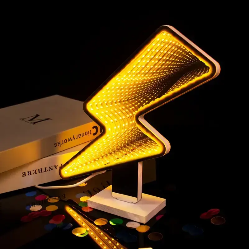 Miroir lumineux LED alimenté par USB avec design en zigzag, intensité réglable, surface en acrylique étanche IPX3 pour la décoration de la maison et des centres commerciaux