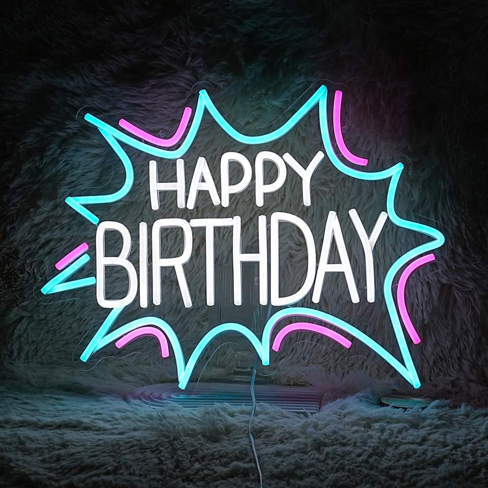 Enseigne néon LED USB en forme de cœur Joyeux Anniversaire, longueur de découpe 2m, indice de protection IP20, blanc/rose, blanc chaud doux 2700K pour intérieur