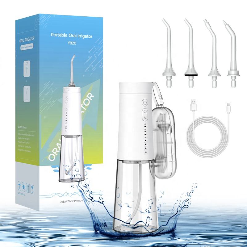 Hydropulseur dentaire portable rechargeable USB à 4 embouts, 5 niveaux de pression, pour extérieur, camping-car, hôtels, garages