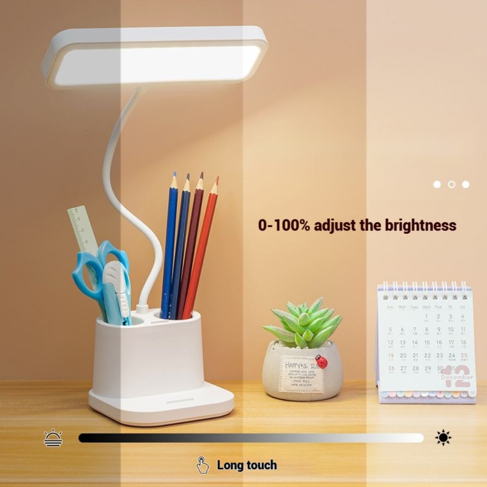Lampe de bureau LED rechargeable par USB 800 mA, trois températures de couleur, porte-stylo, commande tactile, lampe de table pour l'étude
