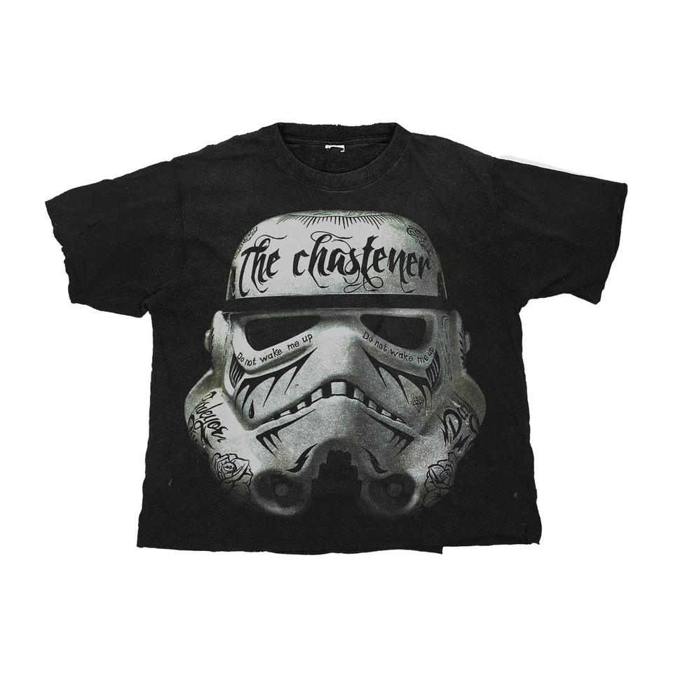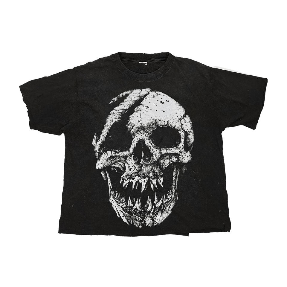 T-shirt en coton à col rond, nouveau design, imprimé numérique motif crâne, style punk, épaules tombantes, coupe ample, vente en gros