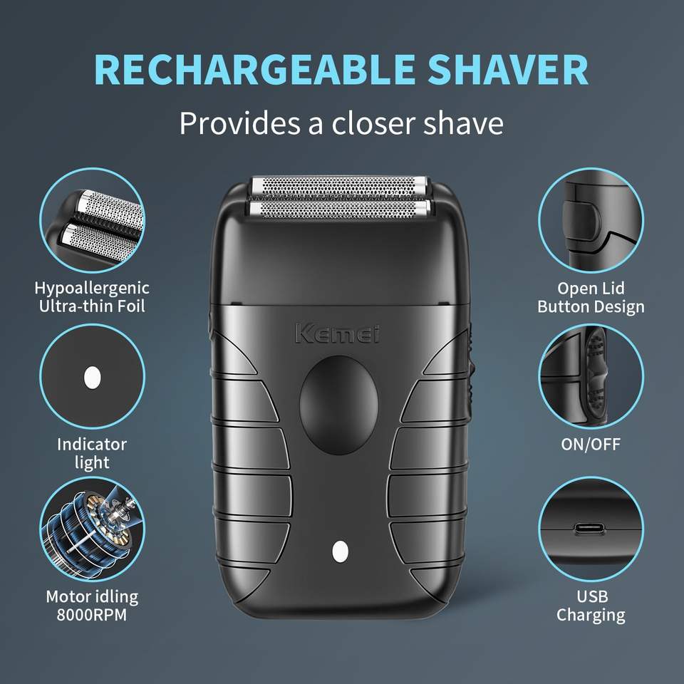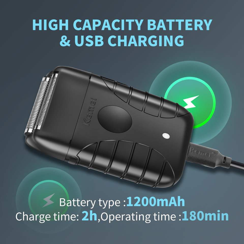 Rasoir électrique sans fil rechargeable par USB pour hommes, longue autonomie avec double lame rotative, idéal pour les voyages en camping-car