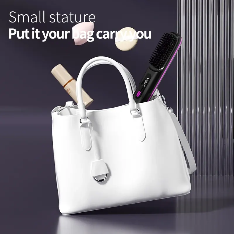 Brosse lissante chauffante électrique rechargeable USB en céramique LCD, portable, sans fil, à ions négatifs, pour coiffage et lissage