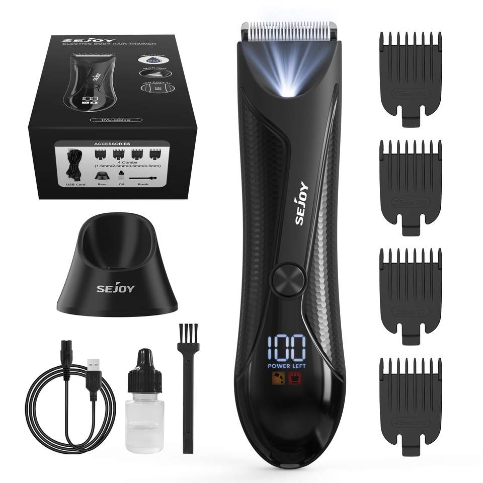 Tondeuse électrique rechargeable par USB pour hommes, pour les poils du corps et de l'aine, lame en céramique, rasoir pour poils pubiens avec lumière LED