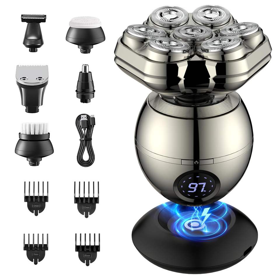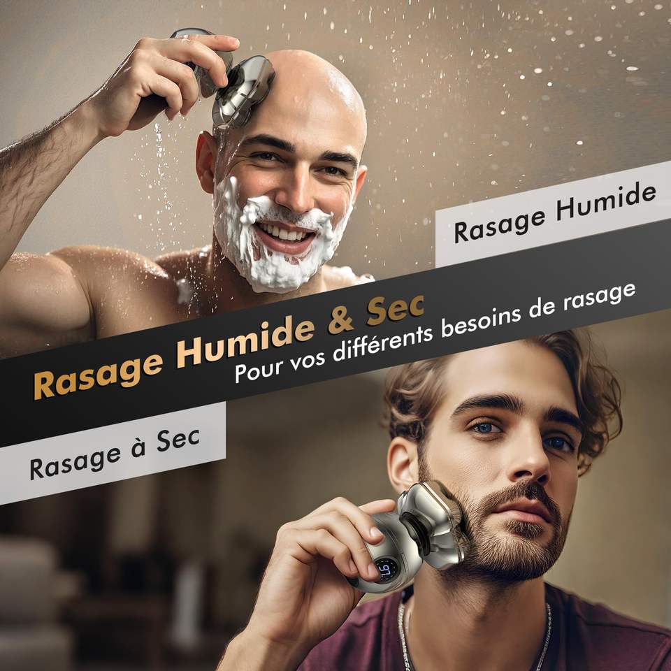 Rasoir électrique rechargeable USB pour hommes, tondeuse pour crâne chauve avec écran LED, utilisation humide/sèche/étanche (IPX7), rasoir rotatif lavable