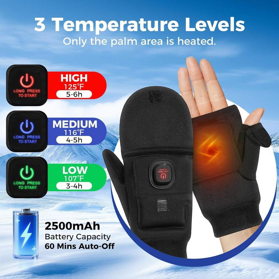 USB Rechargeable Heated Gloves Full & Half Hands Electric Gloves for Women & Men Fingerless Touchscreen Gloves for Work Cycling