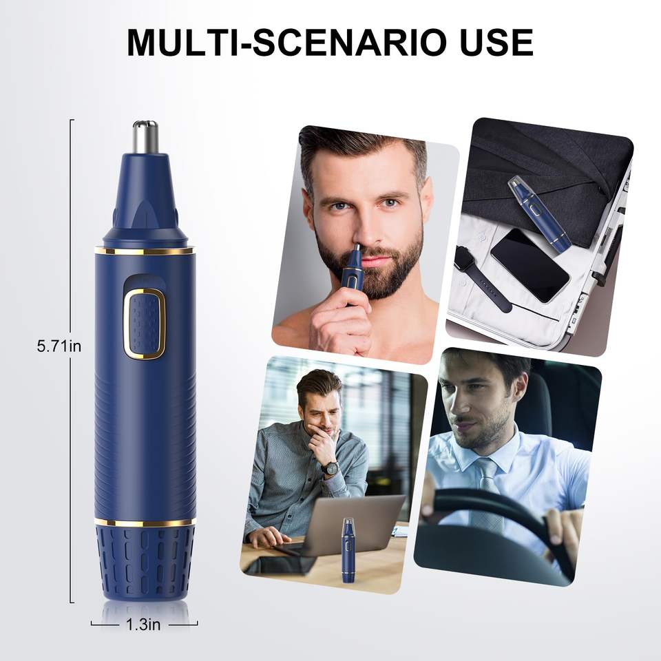 Tondeuse à barbe et poils du visage à double lame rechargeable par USB, étanche IPX7, pour hommes et femmes, tondeuse indolore pour les poils du nez et des oreilles, en plastique