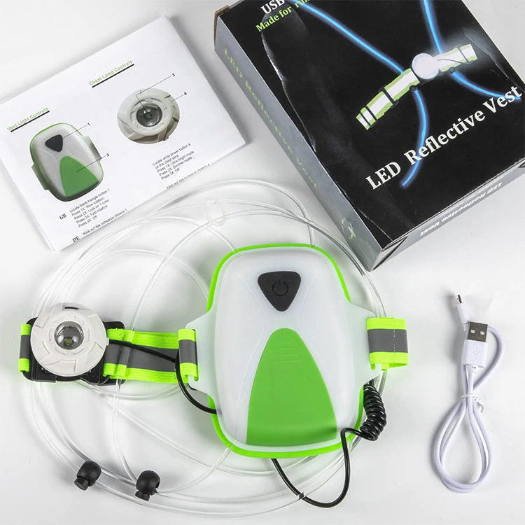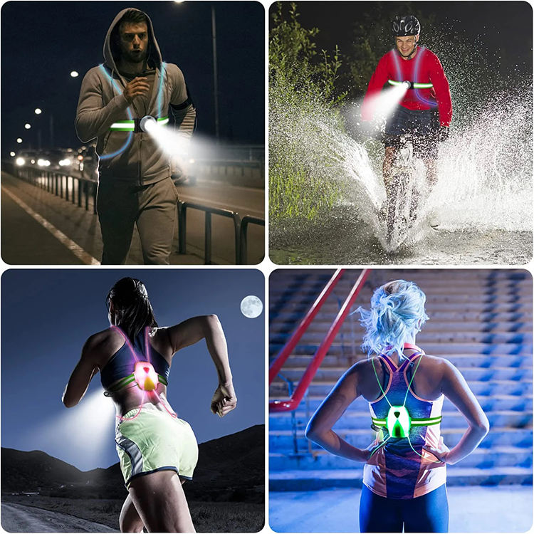 Gilet de course réfléchissant de nuit pour l'extérieur, léger, respirant, 100% polyester, avec LED rechargeable par USB