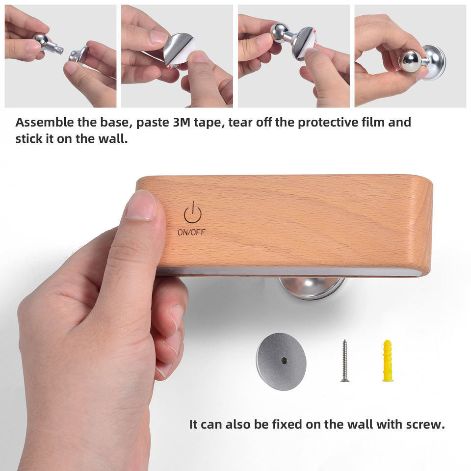 Appliques murales à LED rechargeables par USB Appliques magnétiques rotatives à 360 degrés alimentées par piles pour la lecture dans la chambre à coucher
