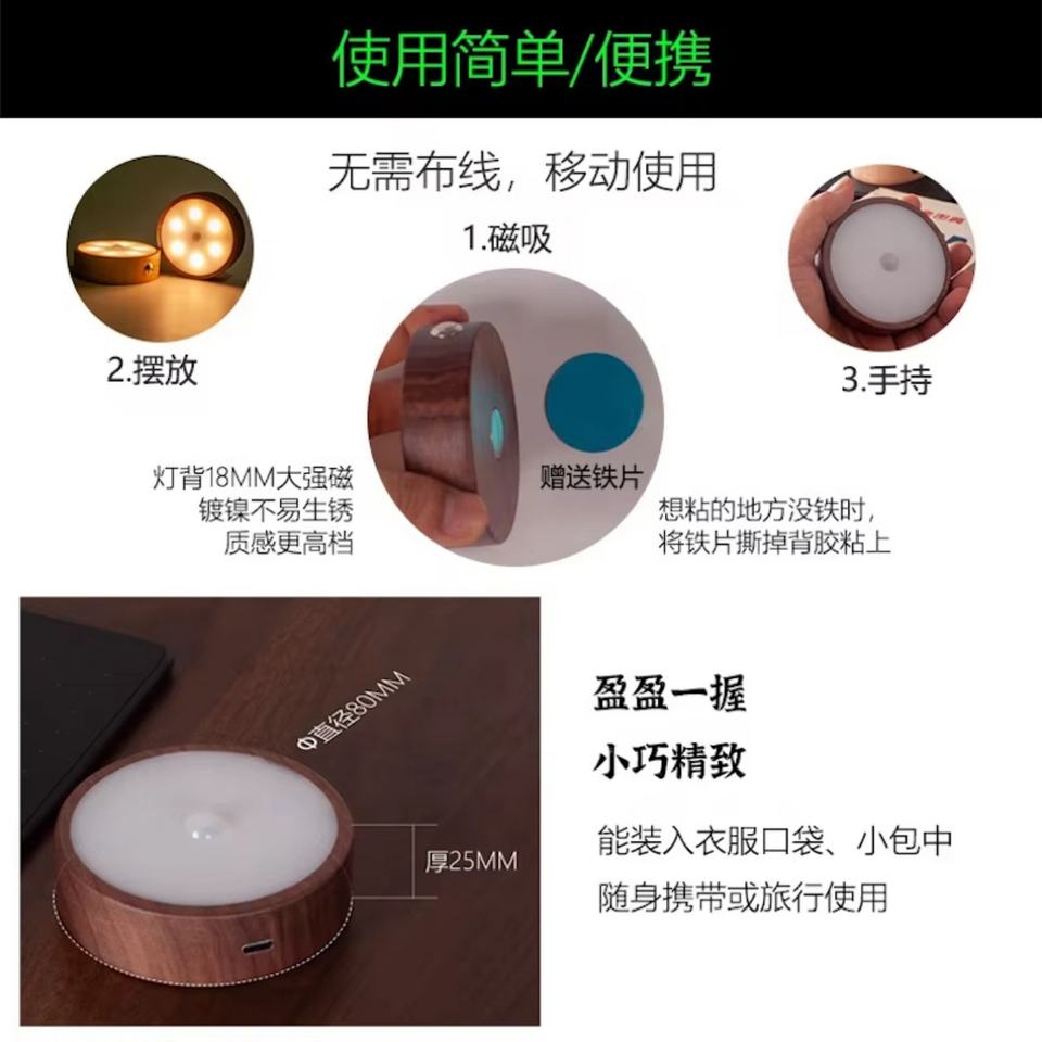 Nom du produit:Lampe à détecteur (bois massif)