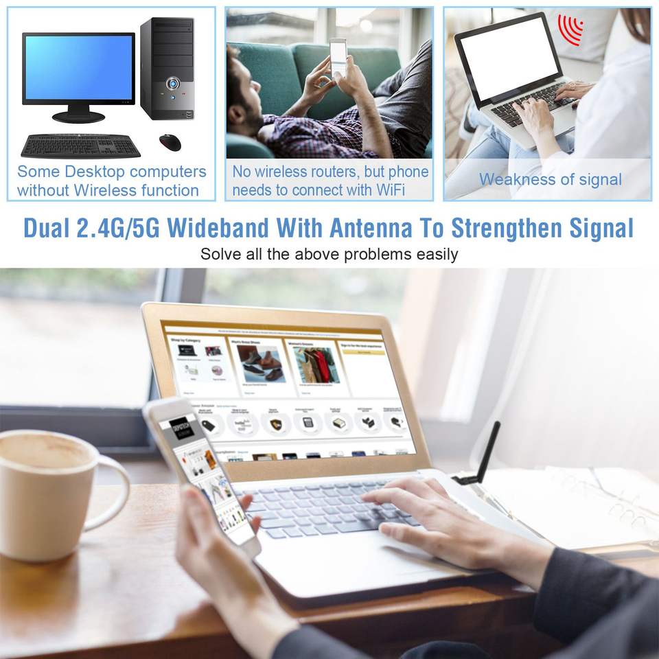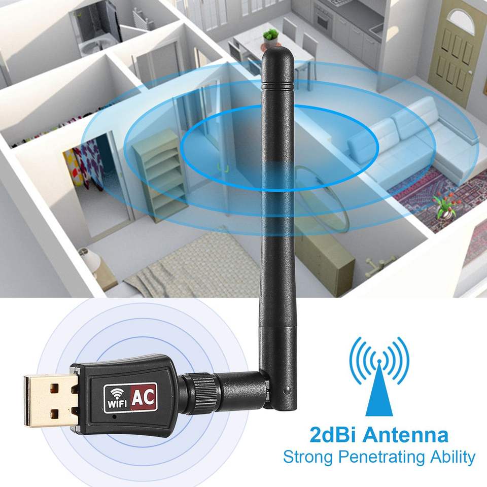 Adaptateur USB WiFi AC600Mbps double bande 5G/2.4G 802.11ac, réseau sans fil pour PC, ordinateur portable, antennes externes 2dBi