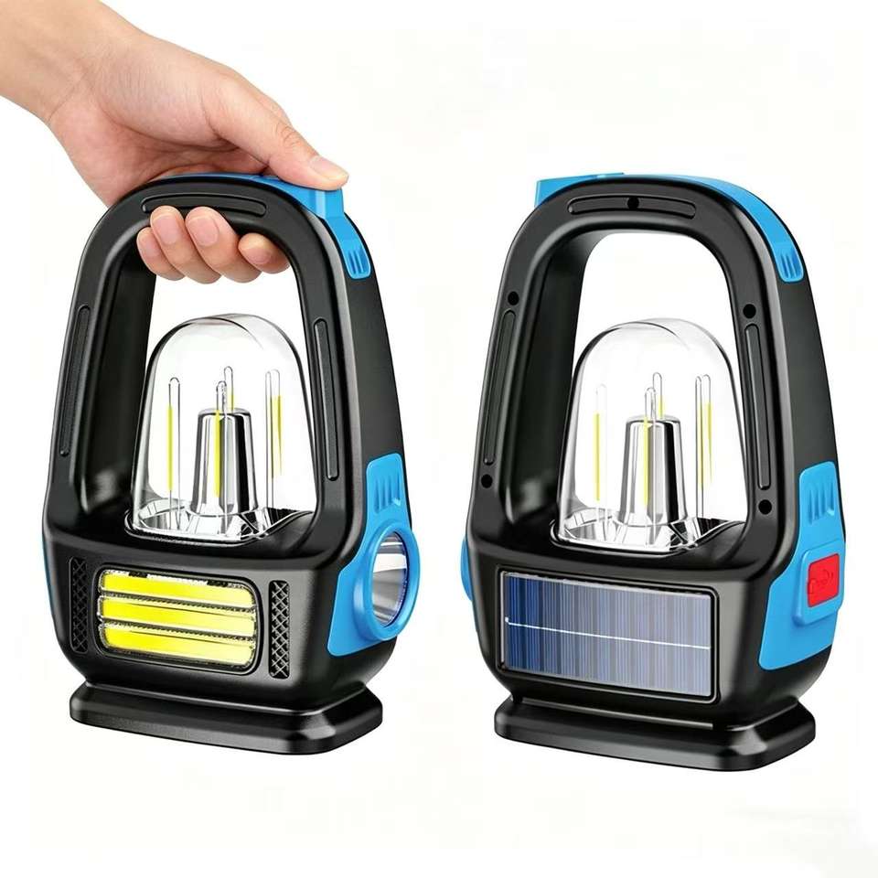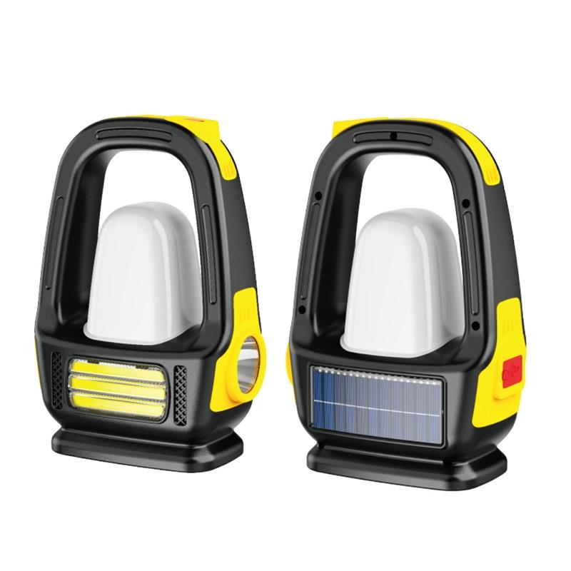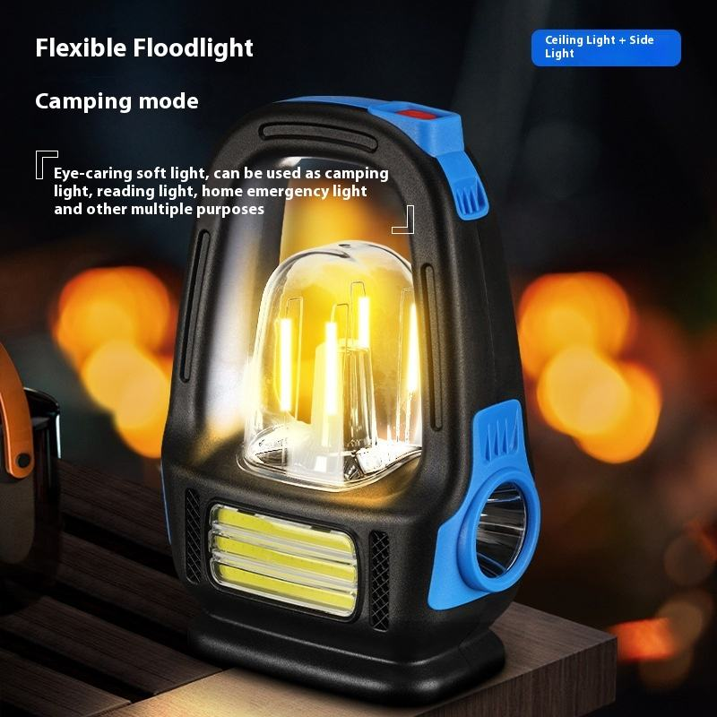 USB rechargeable LED emergency light with COB work light, multiple brightness modes, suitable for outdoor camping.