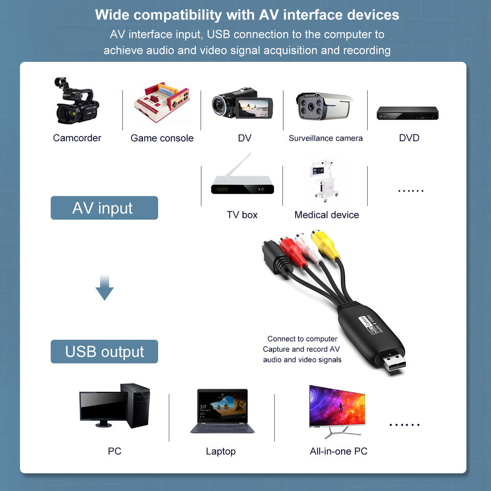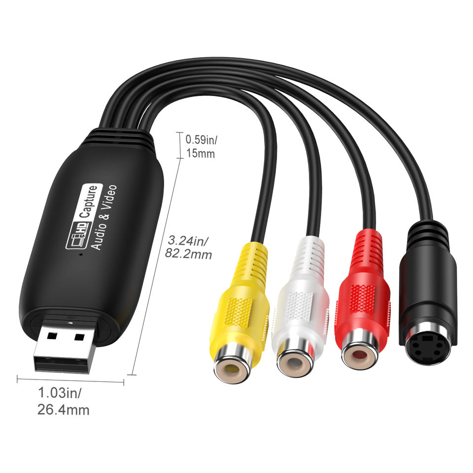 Adaptateur de carte de capture audio vidéo USB2.0 1080P RCA avec enregistrement de câble USB pour dispositif de capture TV DVD VHS