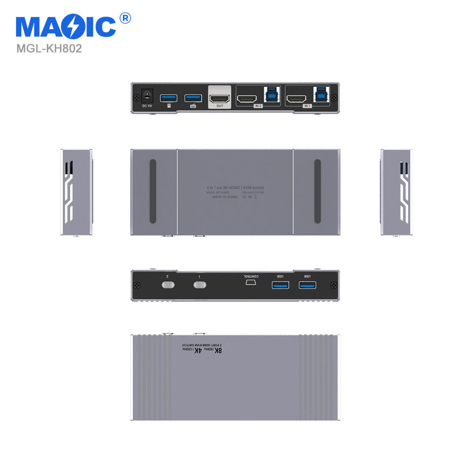 USB3.0 8K 60HZ Vidéo pour HDMI Smart KVM Switcher Console 2x1 EDID 2 en 1 Commutateur KVM avec 2 Port Moniteur Clavier Souris en Stock