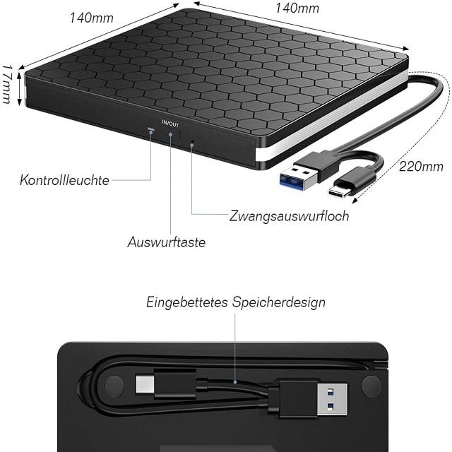 Interface usb 3.0 et type-c lecteur CD-+ ROM DVD +-RW graveur compatible avec Windows Mac OS Linux lecteur dvd optique multisystème