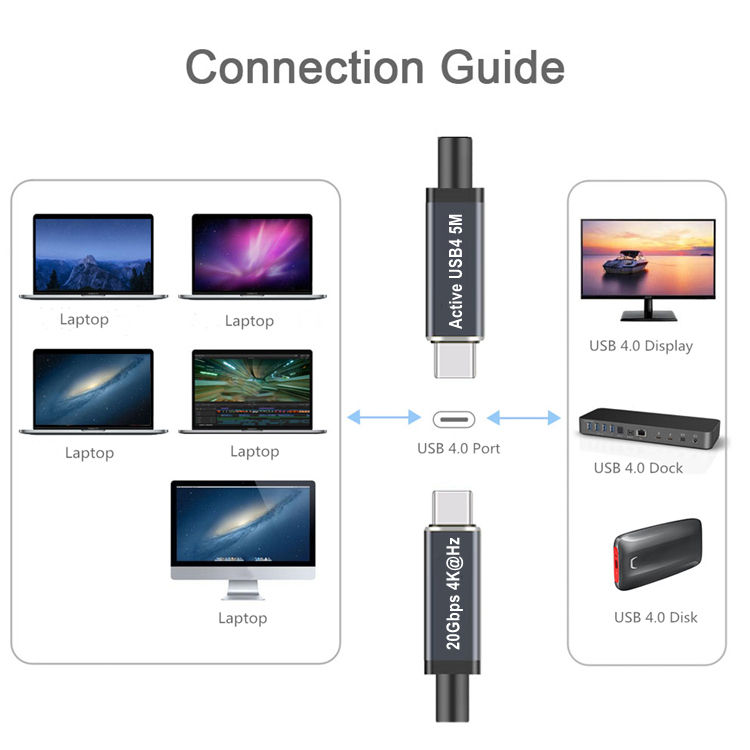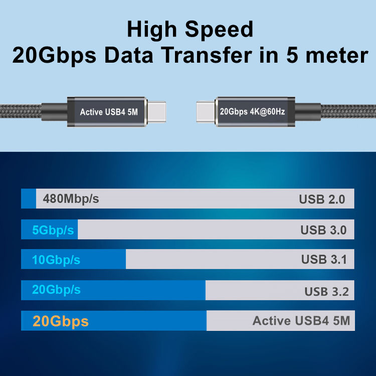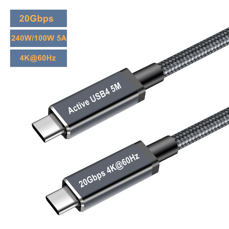 Câble actif USB4 Type-C 20 Gbps Transmission 240W 5M Haute compatibilité avec Thunderbolt 4
