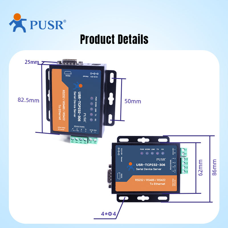 Serveurs de périphériques série USR-TCP232-306 RS232 RS485 vers Ethernet avec alimentation 5-36V, fonction de passerelle DNS, page Web, DHCP, Modbus