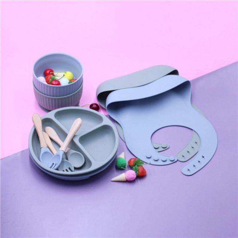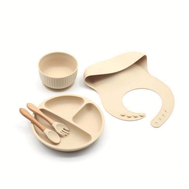 Ensemble de vaisselle pour bébé en silicone USSE avec assiettes et bols à ventouses - Cuillères pour 6 mois
