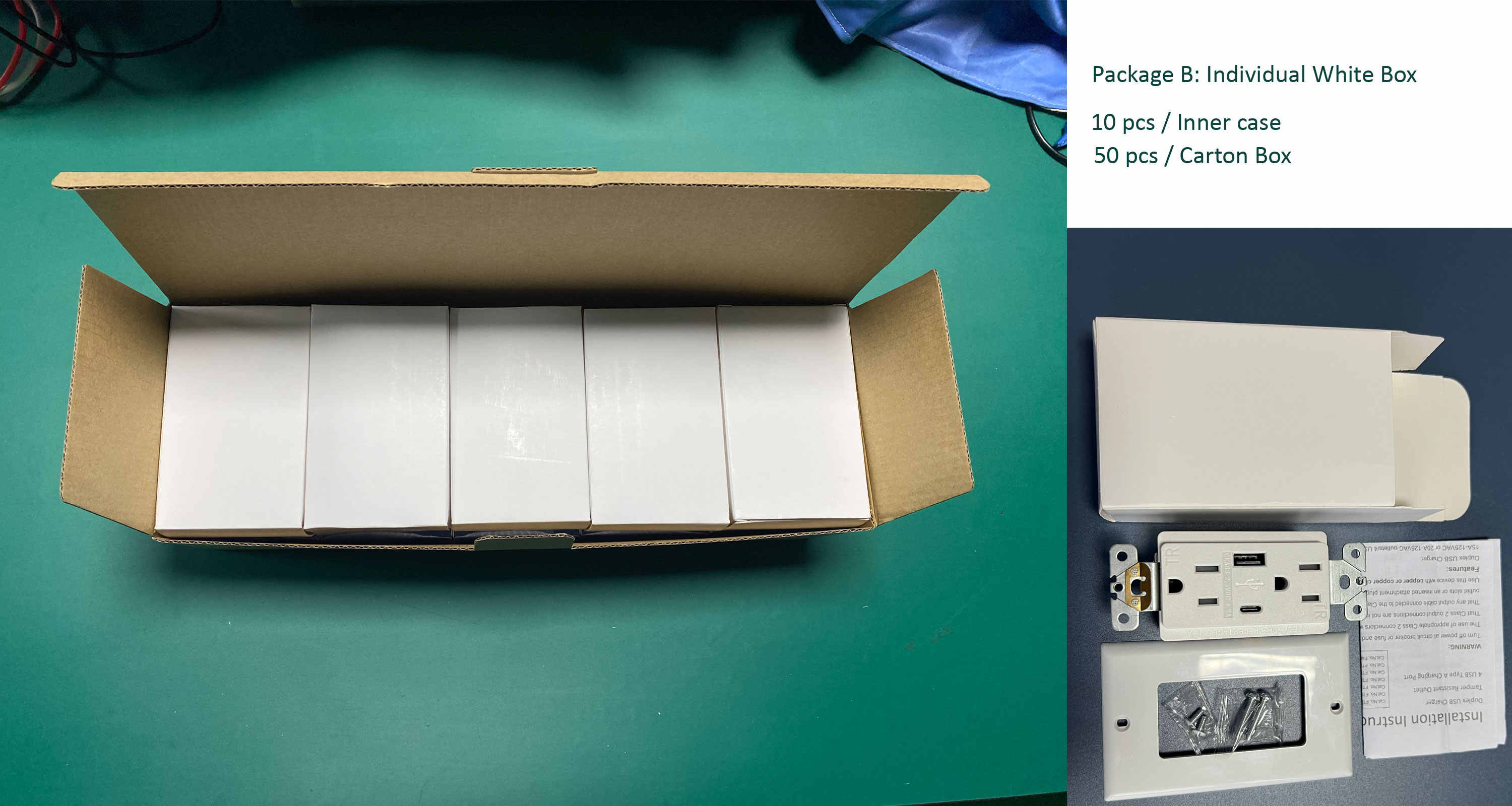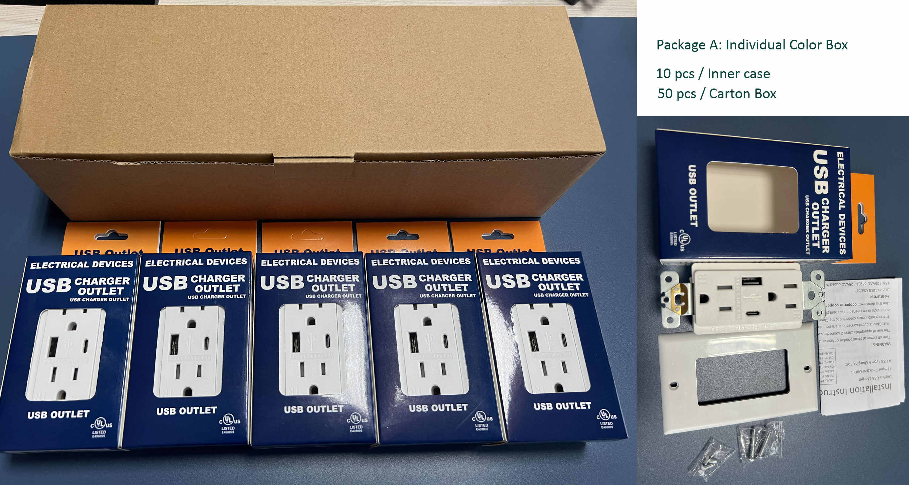 Option 1: 1 pièce/boîte individuelle, 10 pièces/boîte intérieure, 50 pièces/carton principal