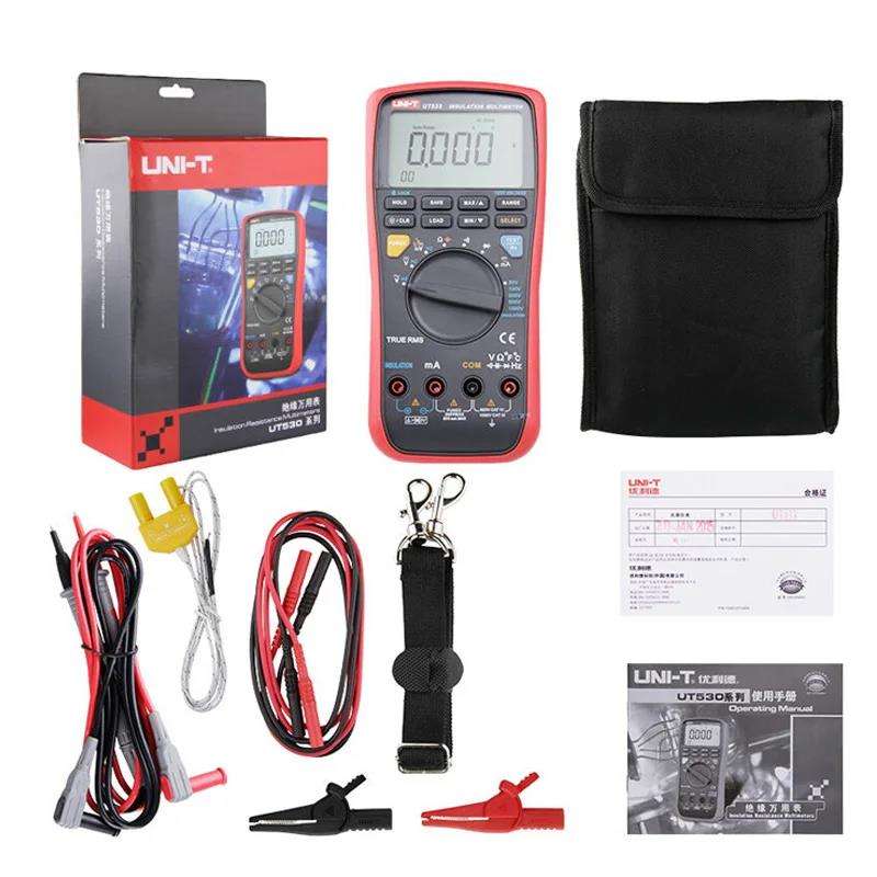 Testeur de résistance d'isolement UNI-T UT533 True RMS, multimètre numérique, plage automatique, AC DC Ohm mégohmmètre, voltmètre, test de capacité