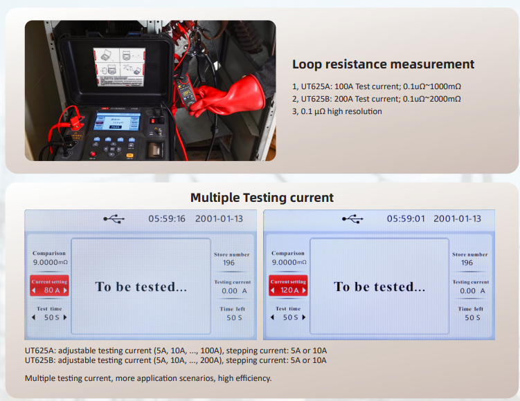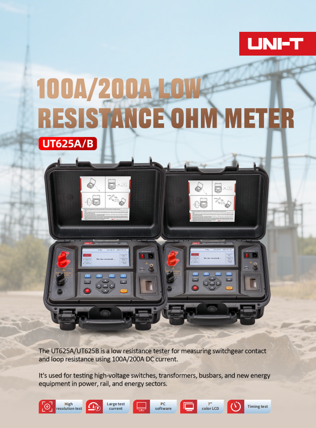UT625A/UT625B 100A/200A Low Resistance Ohmmeter with High Accuracy for Loop Resistance Testing of High-voltage Switches