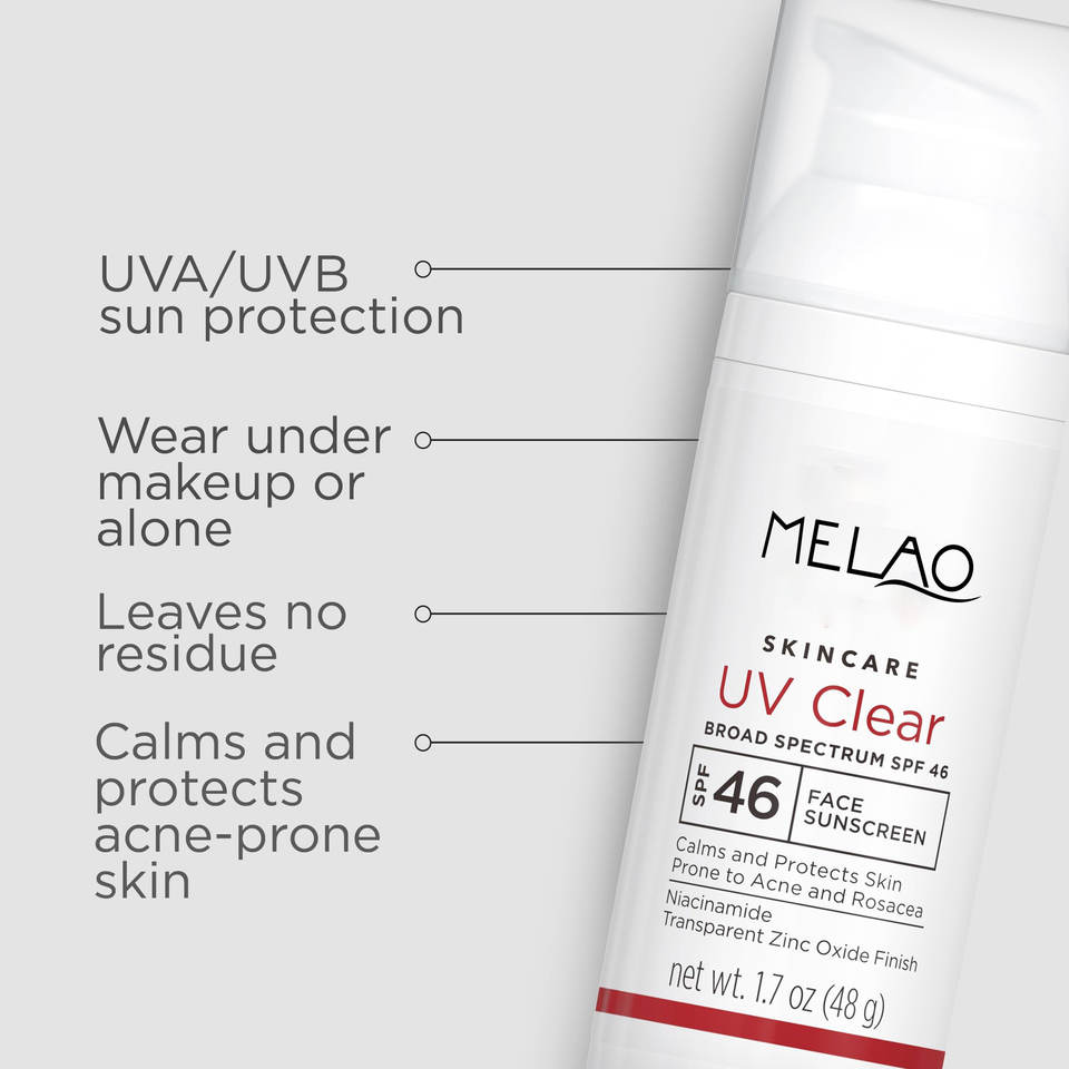Crème solaire visage transparente UV SPF 46 crème solaire sans huile avec oxyde de zinc protège calme les peaux sujettes à l'acné légère pompe soyeuse