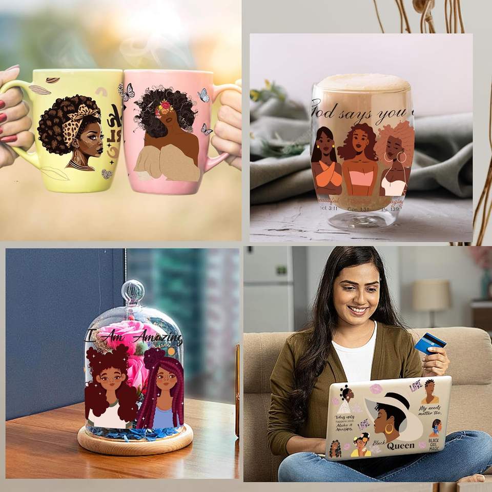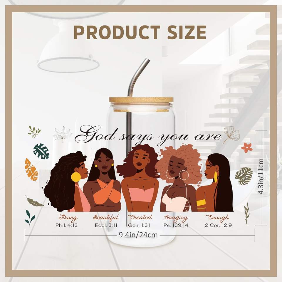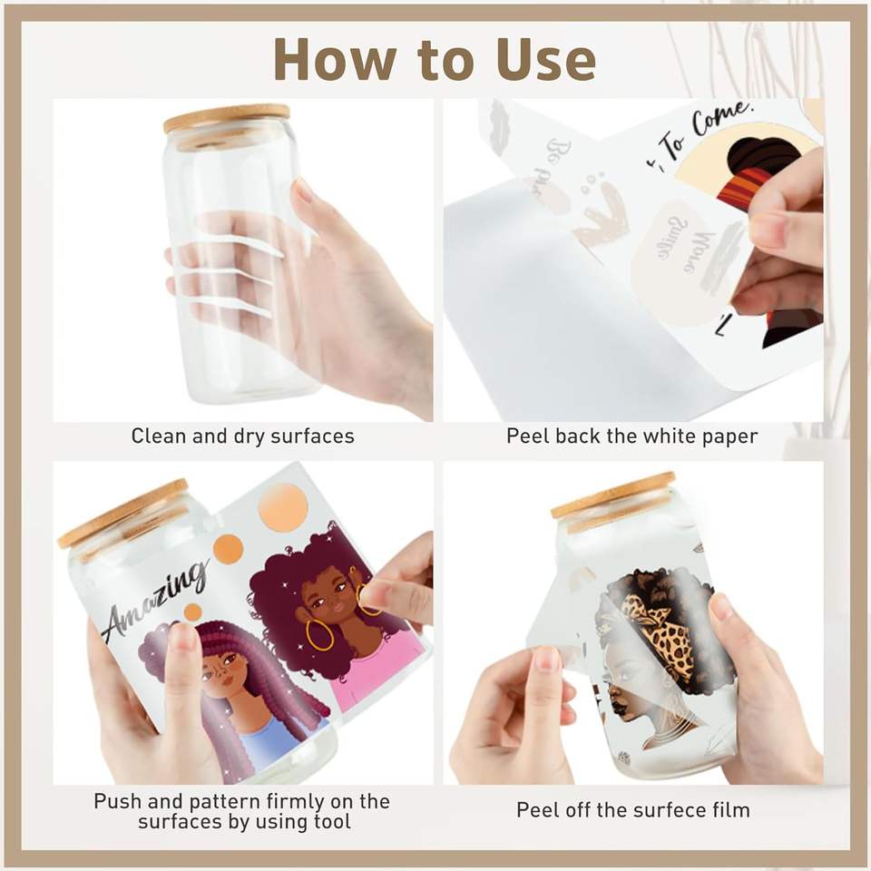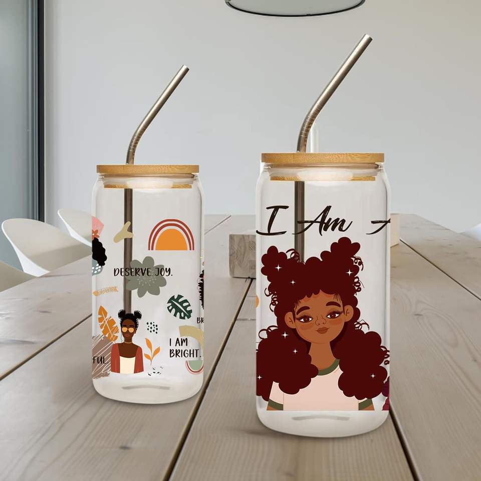Autocollants de transfert UV DTF pour fille noire en verre, coiffure personnalisée, lettres de motivation, 16 oz