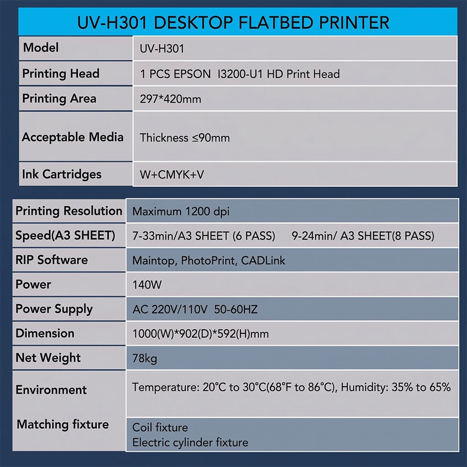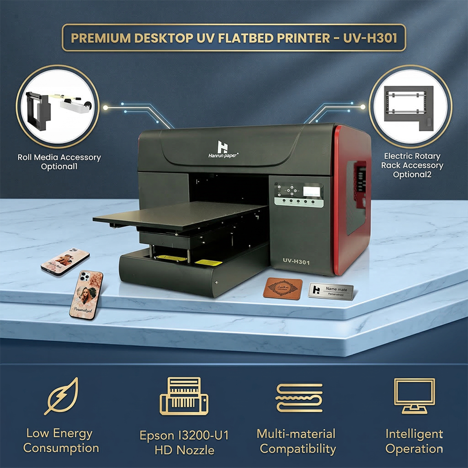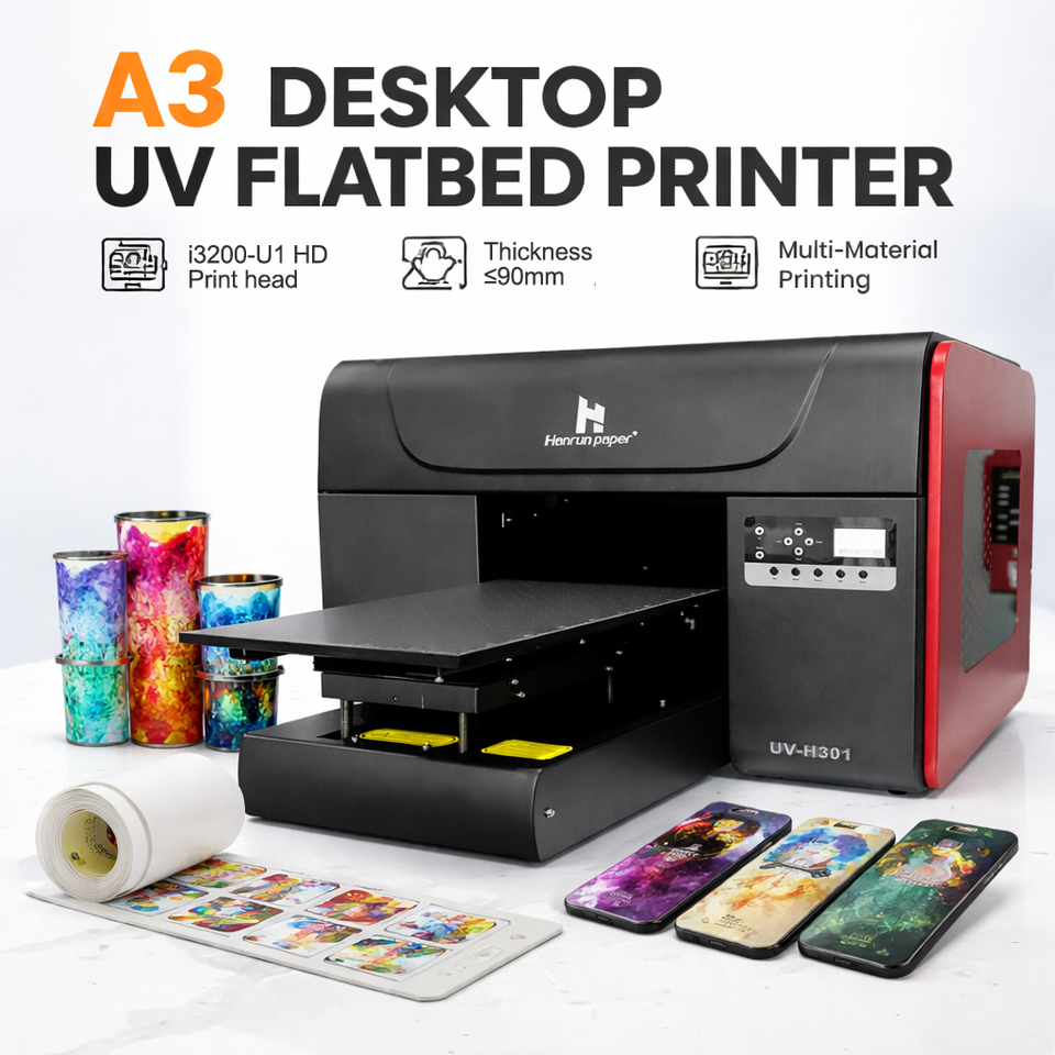 Imprimante d'autocollants UV DTF A3, imprimante à plat UV de bureau H301 pour l'impression de coques de téléphone, de cylindres et de rouleaux