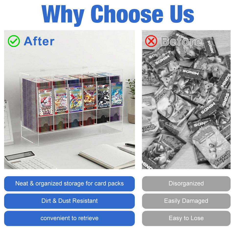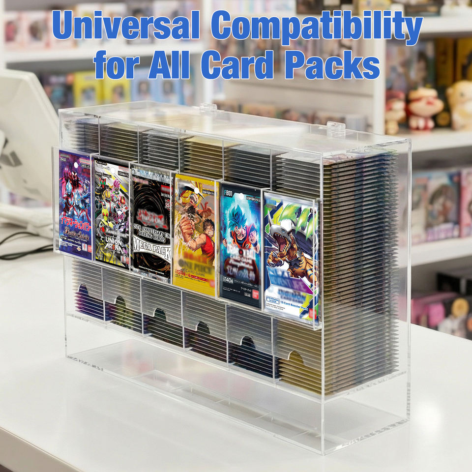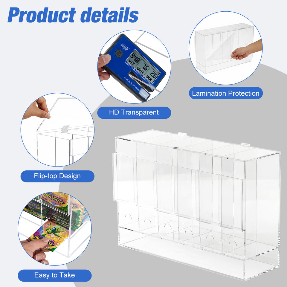 Boîtes de rangement pour boosters de cartes Pokémon en acrylique à grande capacité, résistantes à la poussière et aux UV, avec 6 emplacements et couvercle ouvrant