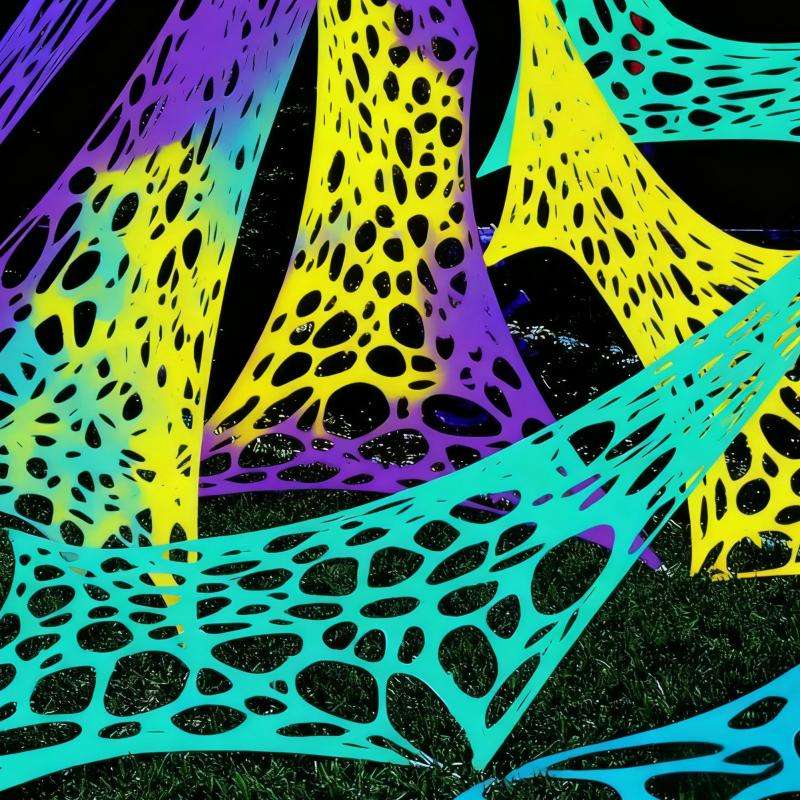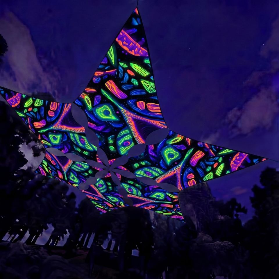 Voile d'ombrage triangulaire réactive aux UV en polyester pour tente de fête RAVE, idéale pour les soirées Psytrance en extérieur