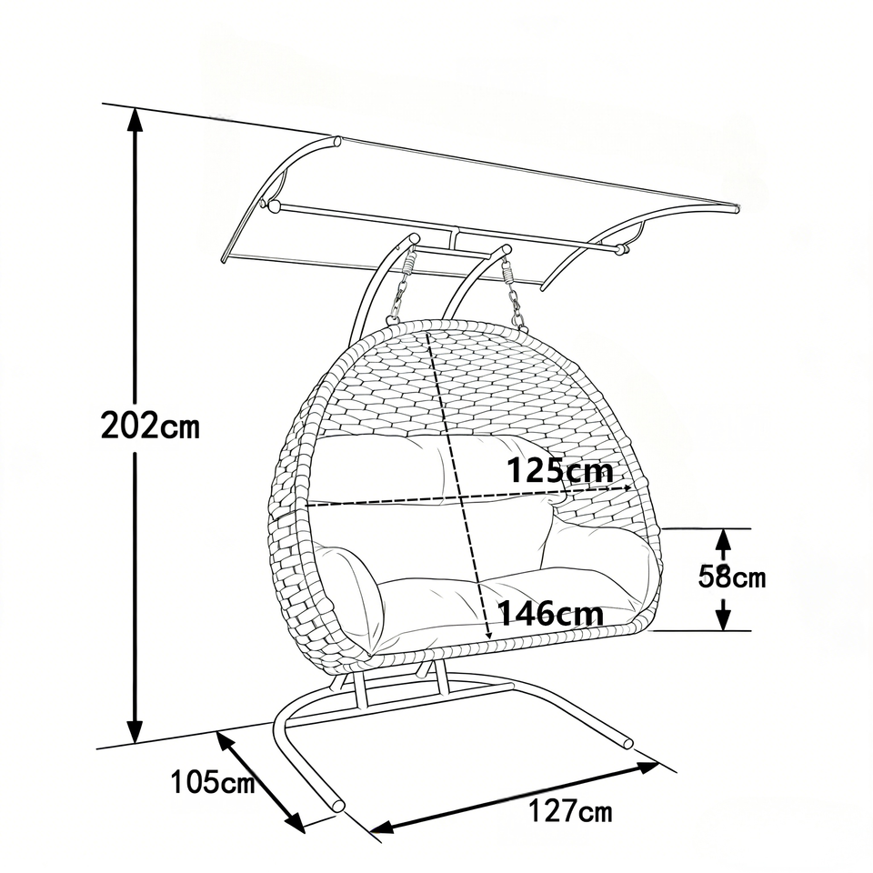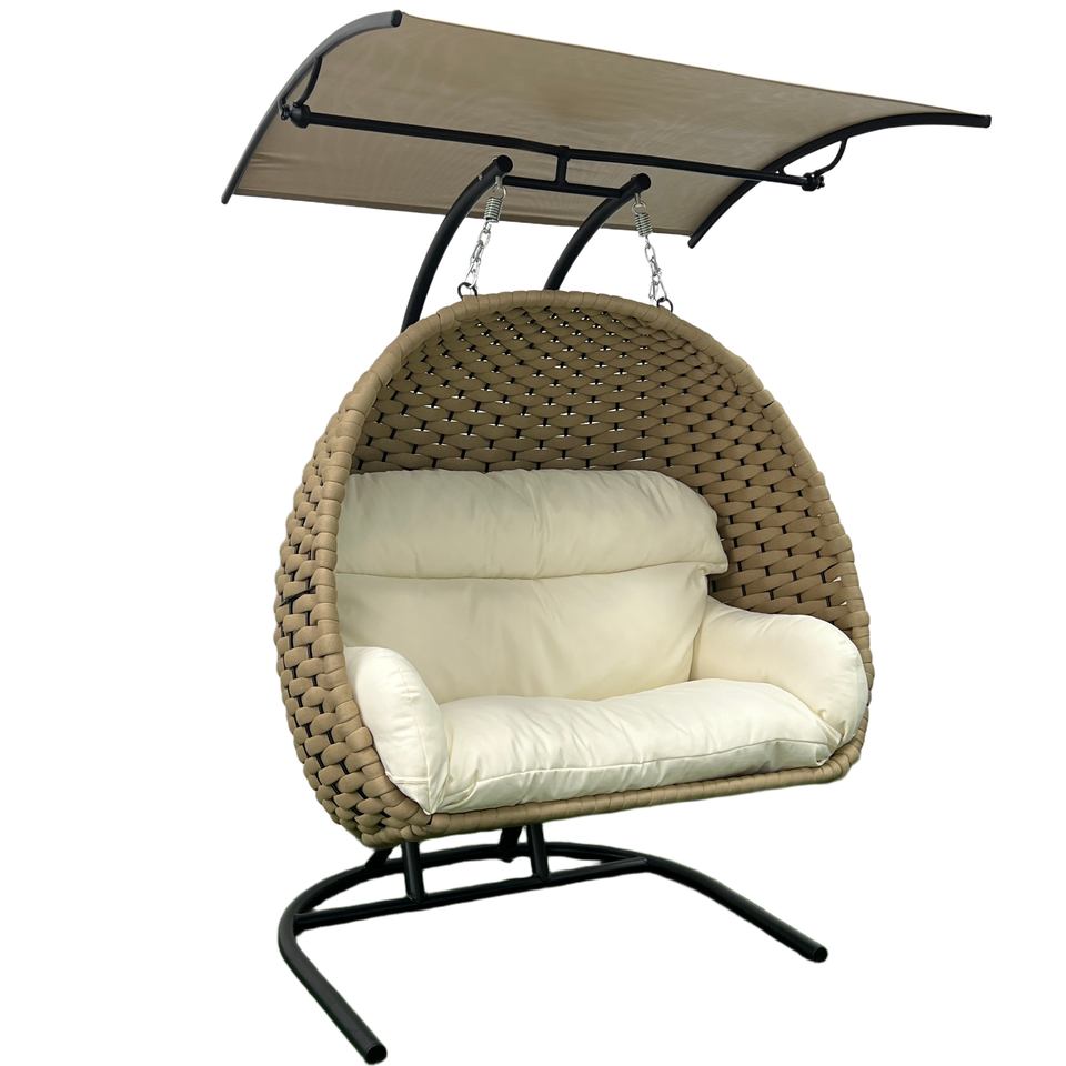 Fauteuil suspendu en forme de cocon pour 2 personnes, en corde polyester résistante aux UV, large tressage, pour extérieur, avec pare-soleil